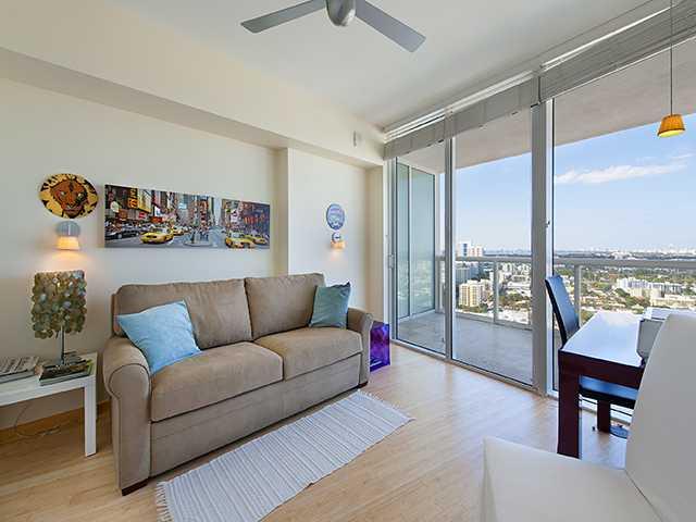 Rarely available high floor line "10" with over 700 sq ft of wrap-around balcony offering amazing direct views to the Ocean and dazzling Downtown and city lights. This beautifully decorated split floor design with bamboo floor throughout has floor to ceil ing windows, European kitchen and top of the line appliances. The Icon is the sexiest building in the whole South of 5th, with its celebrated Philippe Starck's sumptuous lobby and Gym/Spa, its lap and lounge pools, "Dolce" authentic Florentine Restaurant.