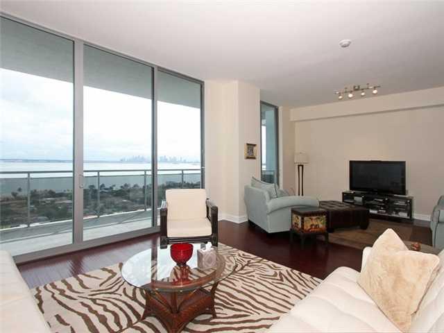 Fantastic 1,753 sqft. 2/2.5 corner unit with separate den and wrap around balcony. Stunning ocean and city views. Beautiful master bath w/ Jacuzzi tub and shower. Gourmet kitchen with SS appliances. High ceilings, wood, floors, 2 assigned parking spaces, storage room. Infinity edge pool, fitness center and theatre room.