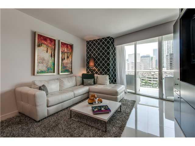 Professionally decorated turn-key 1bed/1bath 984 sq ft Unit (large layout) w/gorgeous bay view in desired Icon Brickell Tower 2. Your client will love it! Over $50,000 in upgrades. Unit features: Modern Furniture w/entertainment center w/fold out bed, le ather sofa, dining set, upgraded lighting, artwork, bedroom set, 24 x 24 white tile floors , roller sunscreen shades + drapes throughout, mirrored tiled kitchen backsplash, high-end wallpaper, patio furniture, dark espresso california closets. Easy to Sho