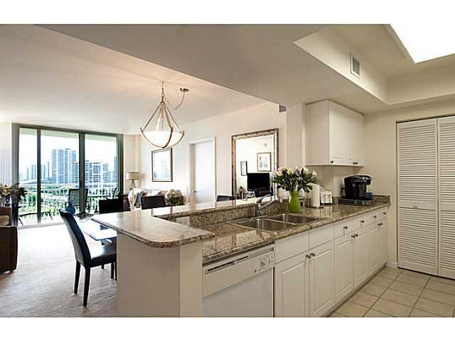 Most desirable view of Turnberry Isle Golf Course, lakes, tropical foliage, palms, Ocean & Intracoastal. Scenic landscaping paints perfect background for this luxury residence with many amenities, spectacular pool area. Playground. Fabulous location on Av entura Circle-walk to Mall, Houses of Worship. Split bedrm layout, gourmet kitchen w/granite & top of the line appliances. Private utility room in unit w/full size washer & dryer. Great deal-seller relocating-new owners may rent immediately after closing.