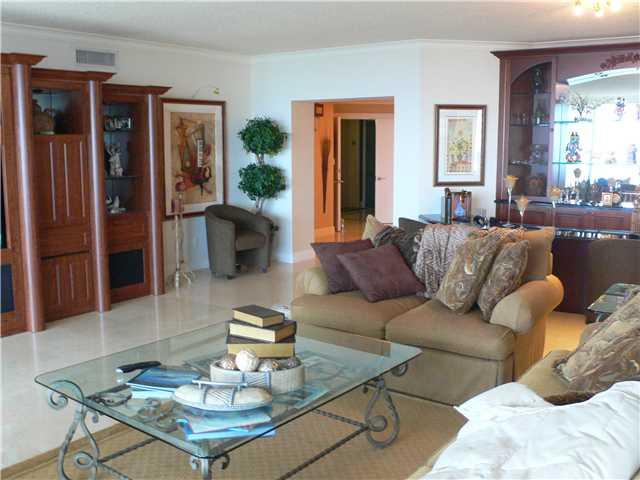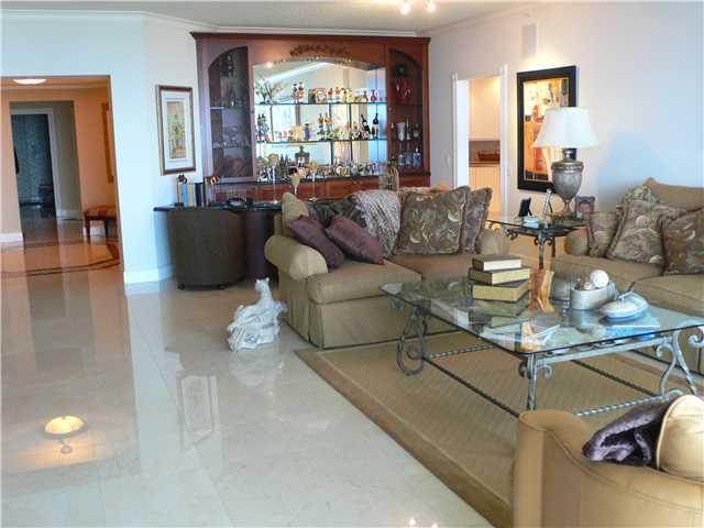 Fabulous NE corner 2 bed+den/3rd bedrm, 3.5 baths. Best line in the Best bldg at The Point. Private elevator w/ double foyer. Crema marfil marble flrs, carpet in bedrooms. Surround sound in the living rm, built in bar, electric shades in all rms, great kitchen with granite tops, built-in double oven w/microwave. 9 ft. ceilings w/ crown molding. Full laundry rm with sink. Built in custom closets thru-out. All marble baths. Wrap around terrace w/ view of the intercoastal and ocean. Hurricane shutters.