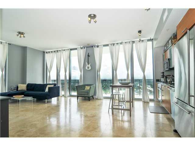 Spacious 2 bedroom, 2 bathroom with City and East views, large wrap-around balcony, high ceilings, travertine floors, European kitchen w/ ss appliances, washer and dryer in the unit, large walk-in closets, 24 hour concierge/ security, valet, lounge area, walking distance to restaurants, Target, cafes, design shops, minutes to the AA Arena, Performing Arts Center, South Beach, Downtown, Brickell, Airport.