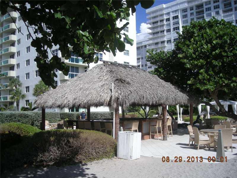 Resort style atmosphere-private beach access. 1st floor, east-ocean wing, direct pool-people view, and partial ocean view from balcony. Kitchen has granite counters and European style cabinet. Unit needs new floor coverings and AC unit- to be sold as-is, where-is. Amenities include European luxury spa services, gym, heated pool, sundeck, tiki huts, BBQ area, restaurant by the pool & cabanas. Club room, billiard table, valet parking, gym, business center, convenience store. Easy to lease and pet friendly