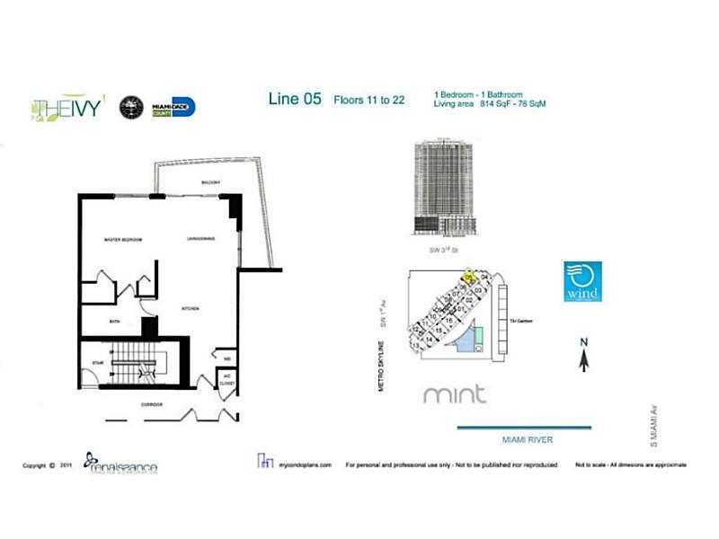 This Beautiful One Bedroom One Bath Corner Unit with view of the Miami Skyline is in The Ivy, located on 13.5 acres of lushly landscaped property on the northern bank of the Miami River. Just a short distance to Downtown, The Brickell Financial District, steps to Mary Brickell Village and the Performing Arts Center. The Ivy boasts an on-site spa, floor to ceiling windows/glass railing balconies large enough to accommodate a dinner table. Stainless Steel Appliances with European Cabinetry, Washer & Dryer.