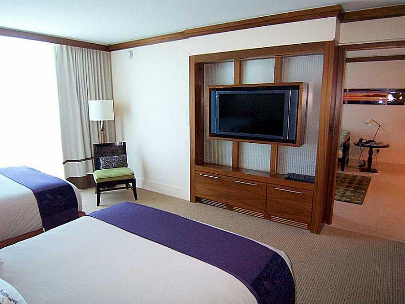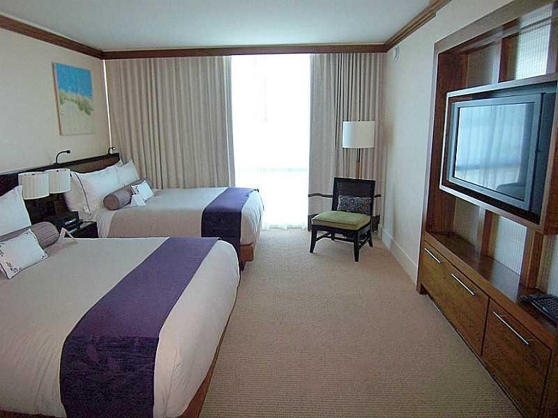CASH OFFERS ONLY. Wonderful corner and spacious unit. Fully-furnished "turn-key" 1BR hotel suite w/kitchen, bedroom with 2 beds, spacious bathroom. NW corner with city/sunset view. 70,000 sf fitness/spa, 4 pools, salon, concierge, gourmet restaurant, pool side cafe, bar, 24hr security, valet, boutique, wellness staff, jog/bike beach path along beach. Owner's closet. Unit in hotel rental program and can only be shown when not rented to a guest. Door #601 / Deed #616. See photos.
