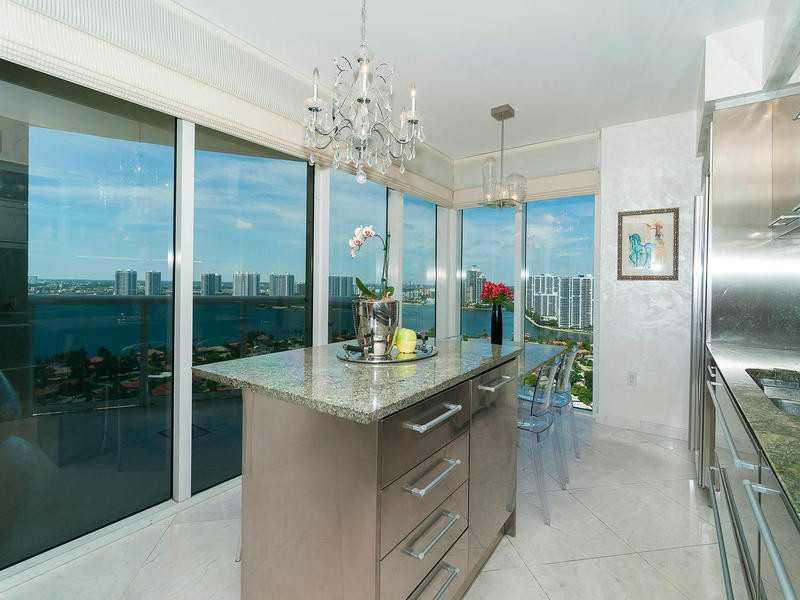 STUNING CORNER UNIT WITH PANORAMIC 280 DEGREES OCEAN/INTRACOSTAL/CITY VIEWS FROM THE 26TH FLOOR. VERY PRIVATE, BEAUTIFULLY DECORATED, FEATURING PHILIP STARK AND HI-END FINISHES. TOP LINE ITALIAN CALACATTA MARBLE FLORING, STAINLESS STEEL KITCHENWITH MIELE APPLIANCES, GRANITE COUNTERTOPS, CUSTOM CLOSETS THROUGHOUT. ONYX FLOORING AND CUSTOM MASAICS POWDER ROOM. VERY ELEGANT AND PERFECT FOR THE MOST DISCRETE BUYER. COMES WITH 2 DEEDED PARKING SPACES. PRIVATE ELEVATOR. TENNIS, SPA, GYM.