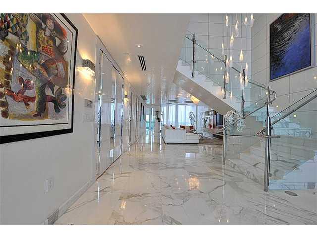 Architectural marvel! Spectacular one of a kind 2 story Penthouse in Jade Ocean. Total 5,700 sf 4 bed + staff room w/6.5 bath, 180 degree views of the ocean, downtown Miami and the Intracoastal with jacuzzi overlooking the ocean. Top of the line finishes , stunning calacata gold marble. Intelligent home touch screen technology which controls lighting, audio, automatic shades and more. Superior amenities.