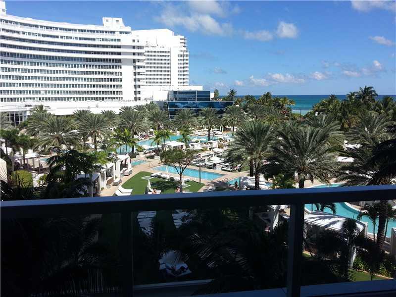 Elegantly furnished 1 bed 1/5 bath Condo in Miami Beach's Fontainebleau Hotel Sorrento Tower. Access to amenities,luxury spa,high tech gym,nightclubs and restaurants. View of pool area, luxury cabanas and the ocean.Large balcony.Includes washer/dryer,2 pl asma tv,computer.Fully equipped kitchen.Owner's option to hotel discounts program and the unit to be on the Hotel Rental Program.Maintenance includes Owners' Lounge buffet with free breakfast,valet, electricity,water,cable, phone,concierge