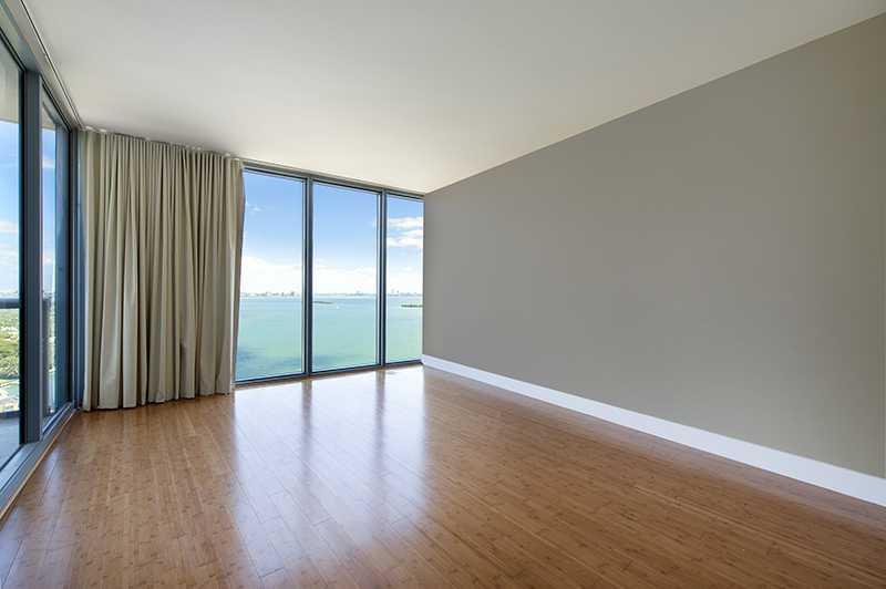 Lowest priced unit in high floor and closest to the bay! This unit is a flow-tru split floor plan featuring 9ft ceilings, Bamboo flooring, Italian style kitchen, granite counter tops, powder room, W/D, custom walk in closets, blackout shades and STORAGE. Full amenities with 24 hr concierge, optional valet, 2 pools, full gym, saunas, hot tubs, billiards, movie theater, business center, bbq area. Walk to Midtown & Design District. Close to SoBe. Can be rented between $2,600-2,800. Vacant and easy to show.