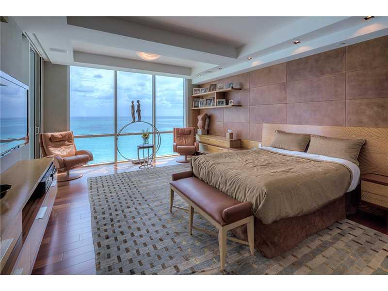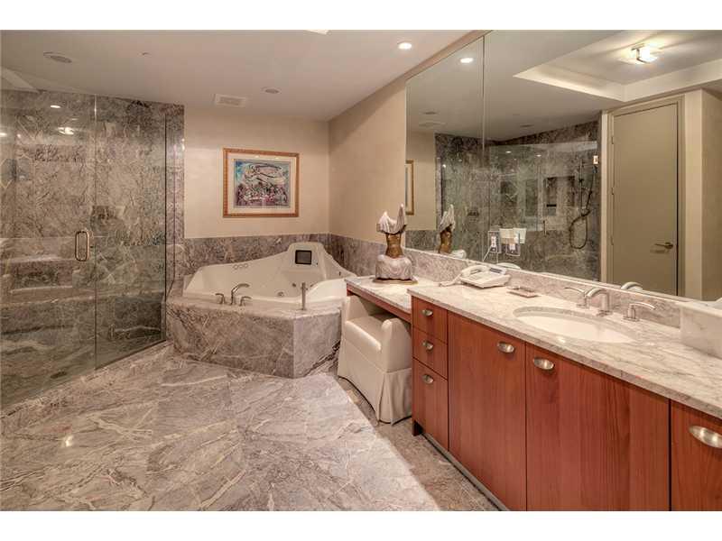 Elegant high amenity living! Spectacular ocean views abound in this NE corner custom designed luxury unit. Exquisite design features include grand foyer entrance w/private elevator, Brazilian hardwood floors, custom designed doors, built-in furnishings, V enetian plaster walls, tray ceilings. 4 bed/6.5 baths plus staff room. Bedrooms #3 converted to office, #4 converted to media room, may be converted back to bedrooms. Crestron Technology System & Lutron Lighting. Sold unfurnished. Built-ins included.