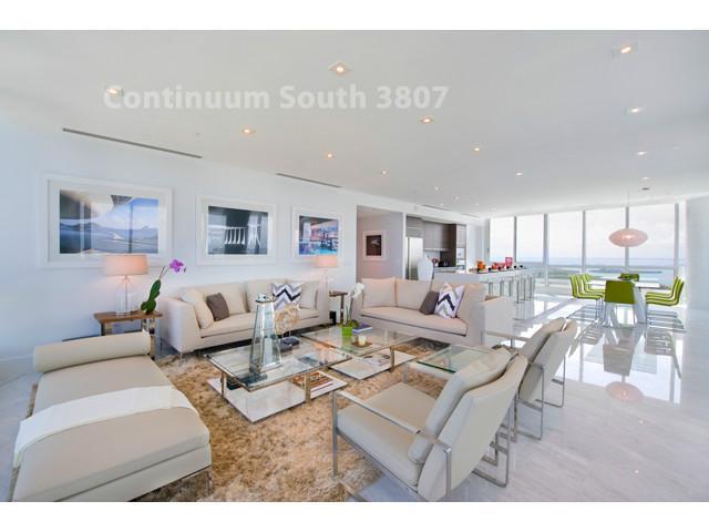 Extraordinary huge 3 bedroom at Continuum South. Rare, brand new, never lived-in unit! Expansive 270 degree views, stunning day/night. Large balcony off the living room, perfect for entertaining. Just finished a no expense spared renovation; unit now feat ures open kitchen by Ornare, custom recessed lighting, custom closets, new designer bathrooms, electric shades/blackouts etc. This designer residence is offered turn key, fully furnished and appointed - move-in ready. Only ocean front bldg south of Fifth.