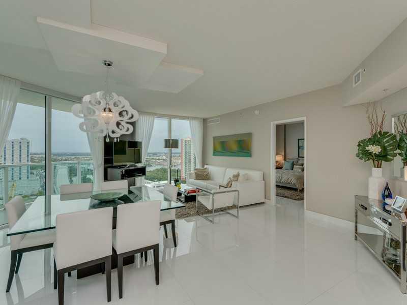 Luxuriously finished unit! Professional decorated fully furnished by interior designer. 3 bedrooms,2 bath embrace by floor to ceiling glass, overlooking Intercostal. All new appliances, white gorgeous flr, window treatments, state of the art kitchen, wal k-in closets & very large balcony. Great building across the beach. 5 star amenities: pool, gym, beach club service, events rm, concierge, valet, boutiques, coffee shop. Low maintenance. Close to Bal Harbor shops and Aventura mall. 20 min from MIA Airport