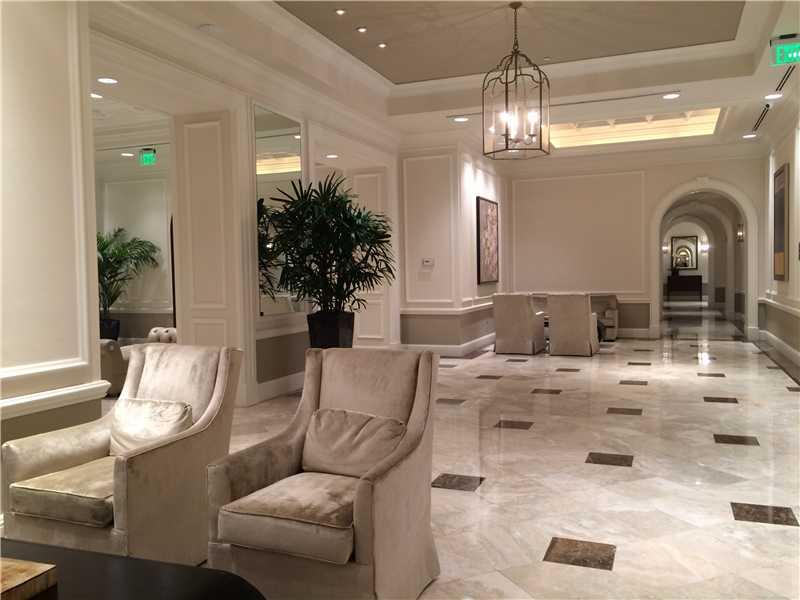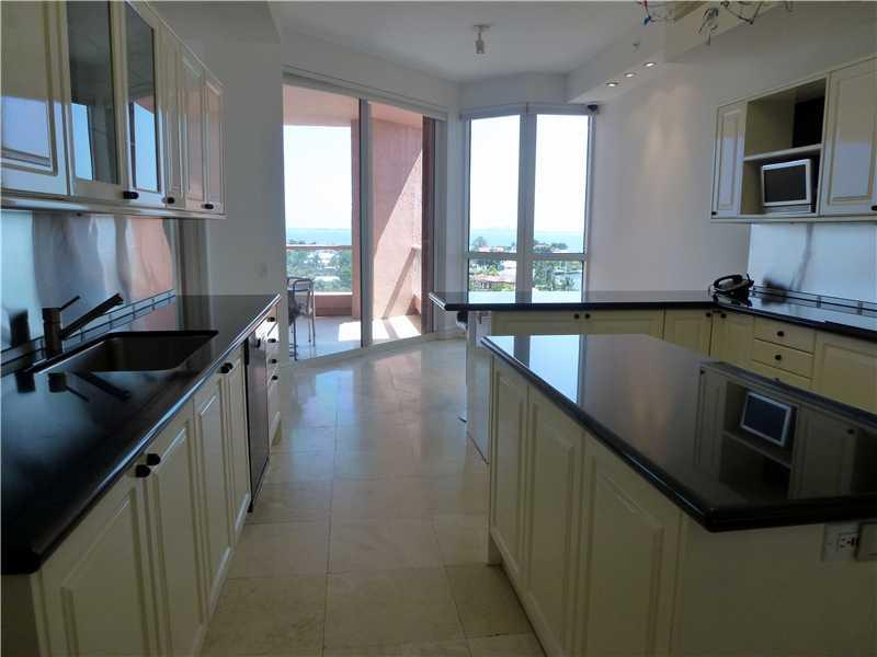 Set in the sky! Be mesmerized the moment you enter this 9th flr condo w/clear views of Coconut Grove, Downtown Miami, Miami Beach & Key Biscayne. Entertain in the large, open living & dining rm area or family style in the white kitchen w/black granite cou ntertops. Marble flring throughout public spaces. An en-suite, private bdrm & bath, an open family den + master bdrm suite w/the addition of a separate ofc. The Gables Condo is on 10+ acres w/private restaurant, spa, exercise rms, heated pools, tennis+