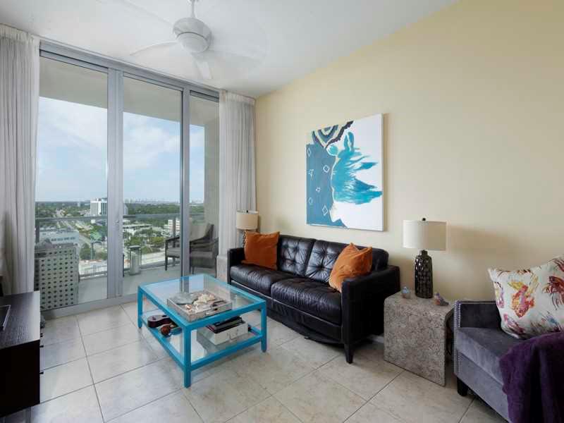 Gorgeous high floor unit with spectacular east views over Biscayne Bay and a panoramic north view of the city. Tile floors, modern kitchen and lighting fixtures give this unit a very special touch. Very desirable area, walk to Midtown Shops and restaurant s. Excellent tenant in place paying $1,925 a month, lease expires Oct. 1 2015 perfect for an investor who wants an excellent return from a reliable tenant. Priced to sell! Tenant in place with 30 days notice contract.