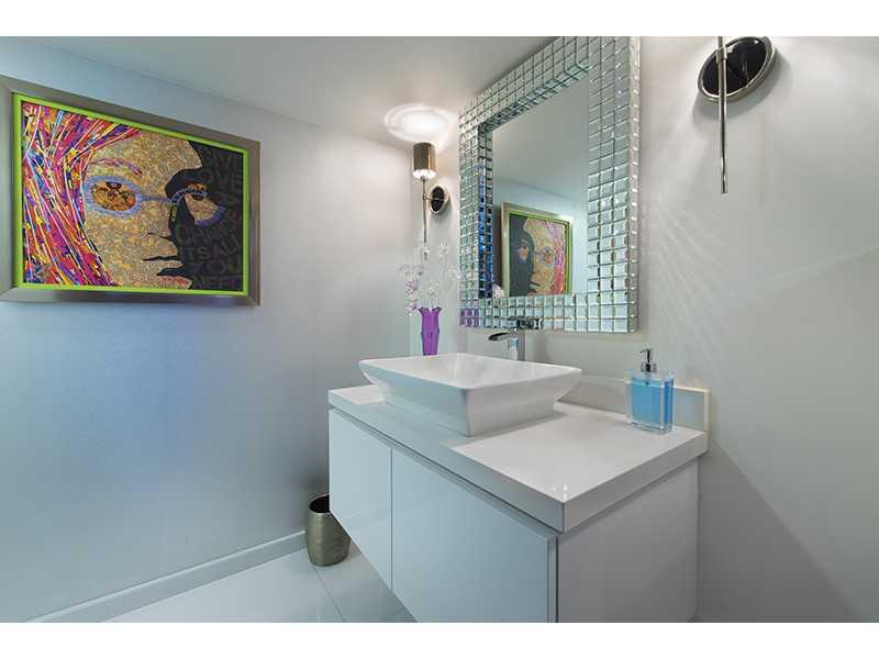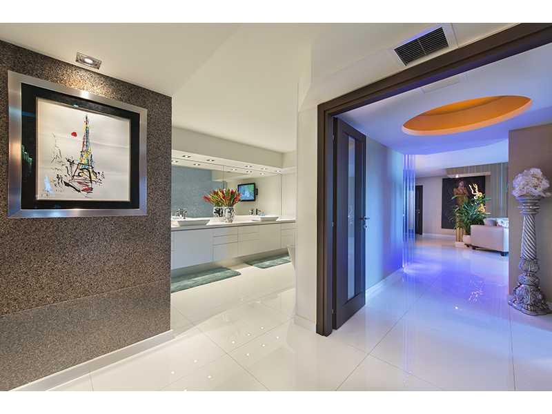 One-of-a-kind unit in boutique bay front building just minutes from Bal Harbour and beach. Remodeled from the studs up. Open floor plan w/32"porcelain glass floors, dramatic lighting, unique arch details, impact windows, soundproof walls, new electric/plu mbing. Designer finishes Philip Jeffries granite wallpaper and Swarovski crystal hardware. Custom kitchen w/quartz counters, Electrolux appl. Balcony runs unit length. Direct boat dock and water access.