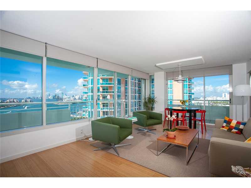 High floor corner unit with views of Govt Cut, Fisher Island, Miami skyline and South Beach. Unit was renovated in 2004 and wall between living room and guest bedroom was replaced with sliding panels allowing for room flexibility. Master Suite features w alk in closet, walk in shower, bidet, and whirlpool tub. Bamboo floors throughout. Unit is in immaculate condition. Full service bldg. with 2 pools, lighted tennis courts, 24 hr fitness center, media and business centers.
