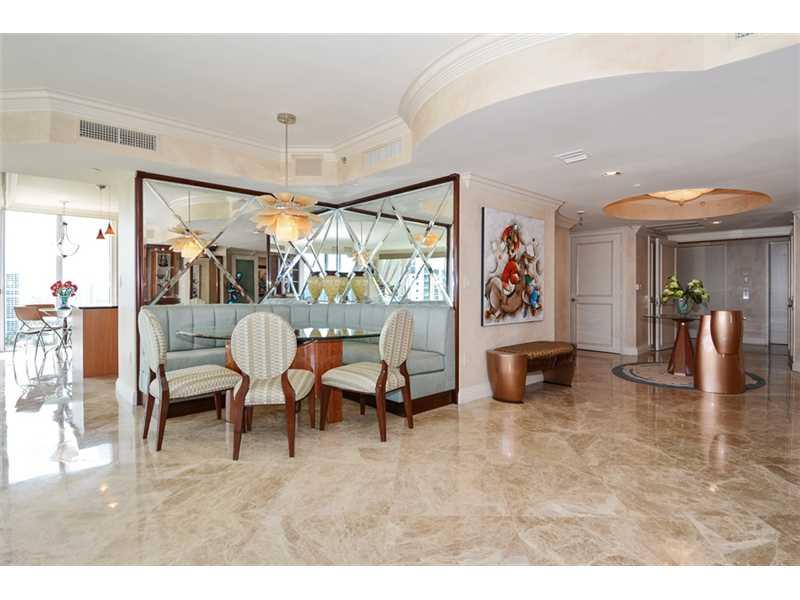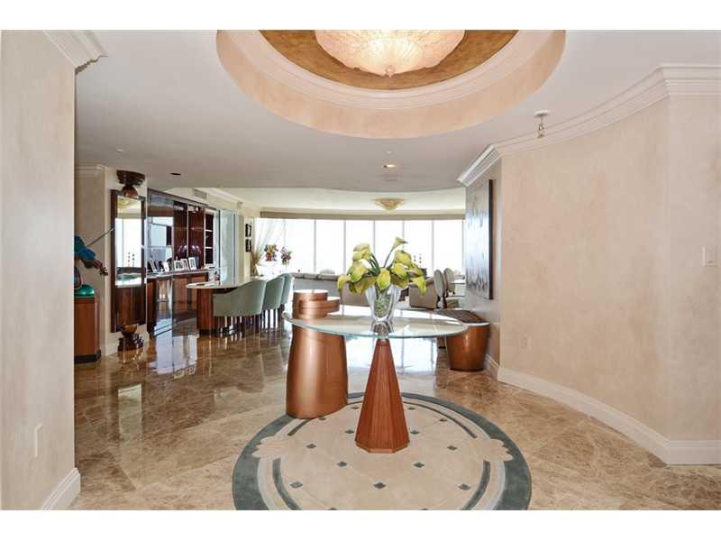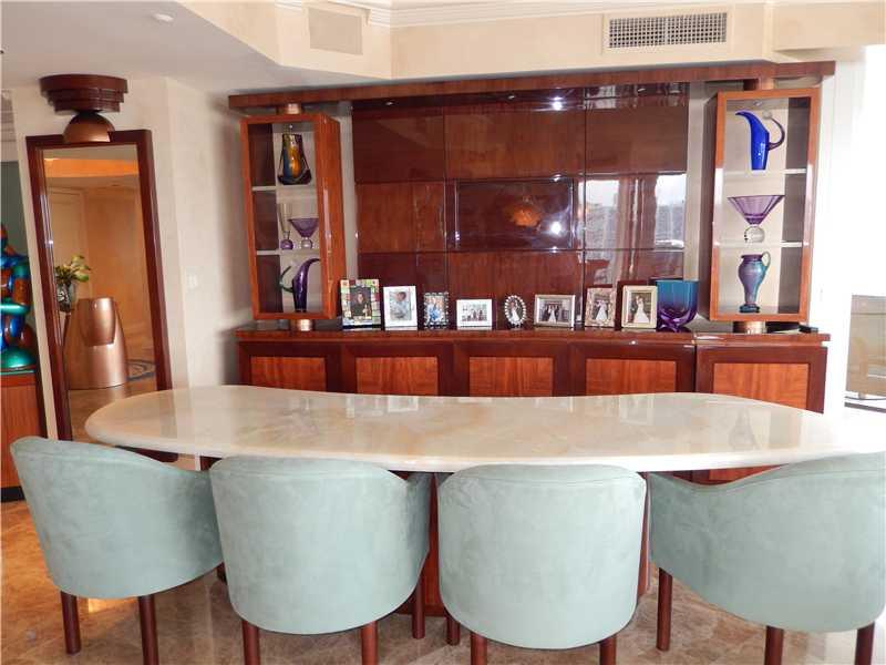 Priced to sell, this magnificent Southeast corner has one of the best floor plans in Sunny Isles. The panoramic views are also the best in the area: ocean, lake and city. Used only as a second home, this beautiful unit is in impeccable condition and read y to move in. Three bedrooms in--suite, and a powder room, this 2864 sq.ft. is accessible by private elevator. Marble floors throughout, high end built-ins made with exotic woods, onyx bar, elegant Murano glass light fixtures and more.