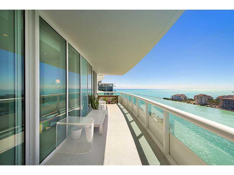 Murano Portofino: 3 bedroom luxury sky-home. Stunningly visual in every detail this offering has a high-definition plus panoramic view of the bay, ocean, Fisher Island, port and city.One of only nine residences with private balconies, foyer and is a true flow-through condo that captures the most amazing Miami Beach Views. A true South of 5th landmark. Complete with a beyond gourmet kitchen including up to the minute Miele appliances, integrated sound and lighting system, custom closets & limestone floors.