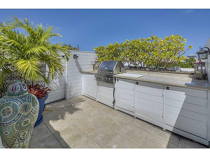 2 bedroom modern loft with direct access rooftop terrace. Extensively upgraded luxury with attention to every detail. Handcrafted finishes include custom kitchen, spa baths with claw foot tub and stone wall accents, wood floors, custom doors/molding & mor e. Balcony & private Ipe wood rooftop terrace, summer kitchen & panoramic views. Live in the sought after south of 5th Miami Beach neighborhood steps to the beach, shops, restaurants & park. Coveted 2 parking spaces. Easy to show.