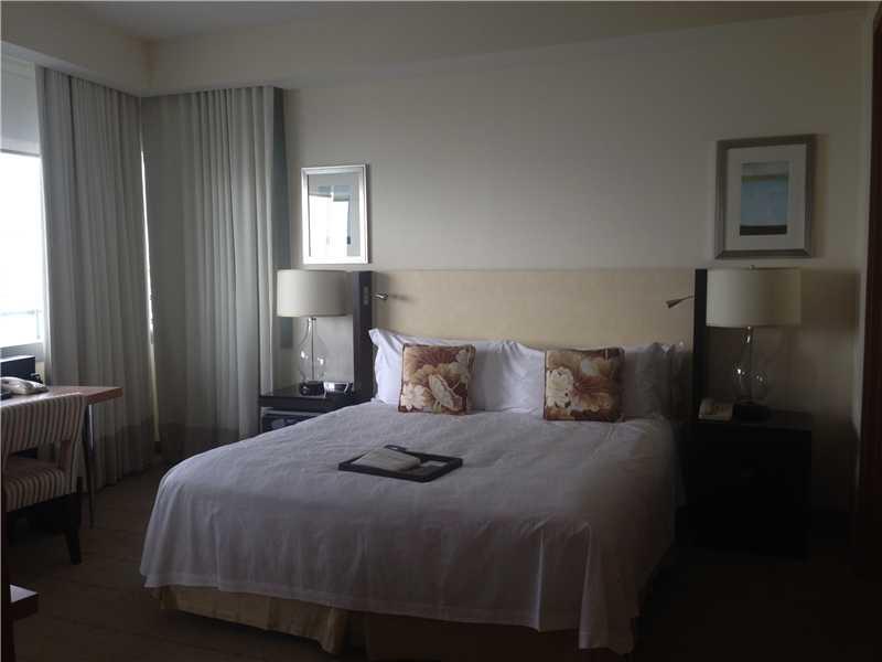 Condo-hotel unit on the 28th floor of the Conrad Hotel at Espirito Santo Plaza, a mixed-use bldg of glass and steel designed by Kahn Pederson Fox. Spacious 1/ 1.5 features wood floor in the foyer & kitchen; sisal-type carpet in the living room & bedroom. Aran kitchen cabinets and GE Whirlpool s/s appliances grace the open kitchen. Open balcony with amazing bay and city views. Five star hotel amenities.