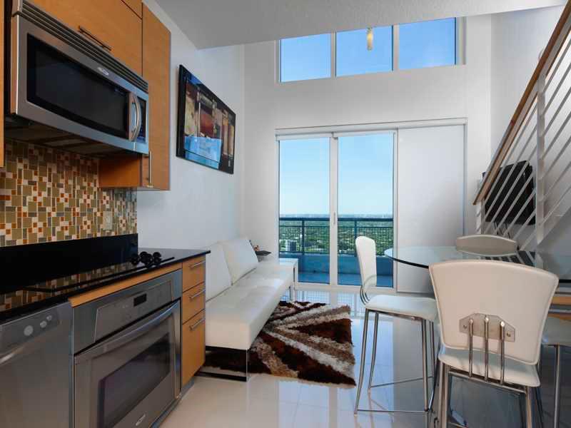 Two story loft condo with half bath downstairs and full bath upstairs. Ceramic floors throughout. Washer and dryer in unit. Enjoy beautiful sunset views. 24 hour concierge, full security, valet parking and much more, walking distance to shopping, Brickell District, Mary Brickell Village and Restaurants