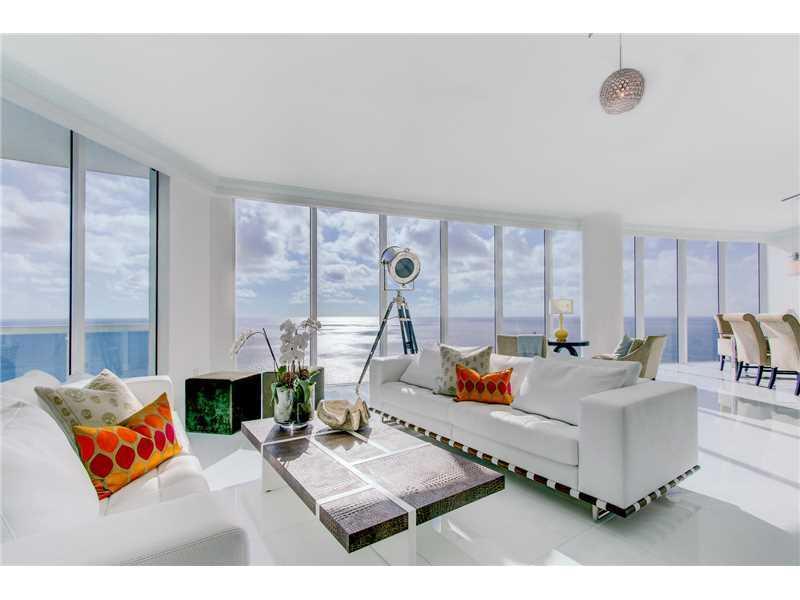 TRUMP HOLLYWOOD SKY RESIDENCE. Corner unit, flow through apartment, 5086sq ft under A/C, 927sq private terraces, 5bd, 5.5 bths, plus library TV room living & dining area & gourmet kitchen. High ceilings, floor to ceiling impact windows, 3 terraces to view sunrise & sunset w/ EAST WEST & NORTH exposure. A private elevator to the unit, white marble & honey onyx accents in private entry, Venetian plaster walls in unit, custom master closet & bath featuring Thassos marble, Kohler DVT shower system & jacuzzi tub, electric shades, smart house, w/surround sound & entry camera. Full building amenities featuring fantastic pool and beach service everyday. EXTRAS:5 parking spaces, 2 storage bins plus private cigar box on Mezzanine level cigar room. Spectacular PARADISE FOR ONLY 857/sq ft under a/c