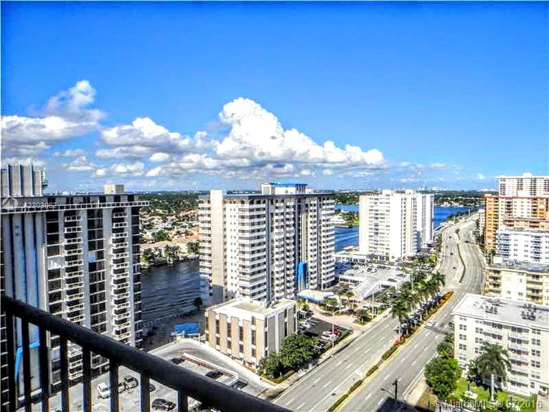 Ocean, Intracoastal & City Lights View- you have it all here! Breathtaking panoramic view from the balcony and each room. Enjoy the ocean breeze during the day & incredible city lights at night. Spacious split floor plan, 2 full baths, walk-in-closet and more. Complex offers a variety of enjoyable amenities.
