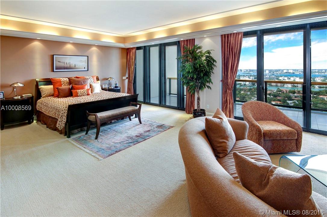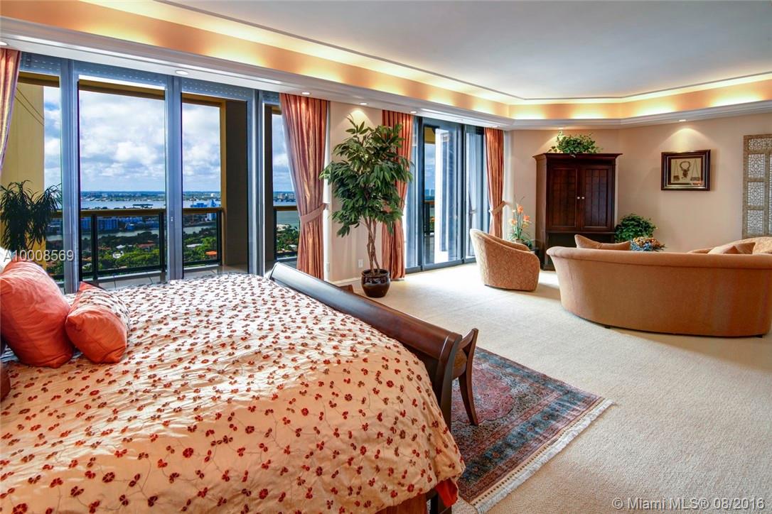 Magnificent 6,444 sq ft penthouse with spacious wraparound terraces & sweeping views of the ocean, Biscayne Bay, & the entire Miami skyline. This opulent unit features 3 bedrooms, 4 baths, powder room, cedar wood dry sauna, elegant office & staff quarters. Carefully appointed features include: beautiful updated kitchen, expansive master suite, marble floors, custom built-in millwork, recessed lighting, tray ceilings & more. Premiere building offers top-notch services & a renowned private restaurant.