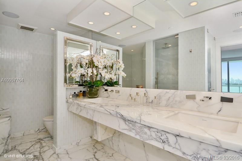 One of the most exquisite remodeled properties in Miami Beach. No expense spared in this 3bed 3.5bath (1,994 SF) SW corner unit. Features include statuary slab marble & quartz bathrooms, white glass and ceramic wood flooring, LED lighting, sound/audio system, two private balconies w/views of Biscayne Bay, Star Island, & Downtown Miami. Full service luxury building offers 24hr security, valet, concierge, world class fitness center & heated pool & spa.World class dining, entertainment & more! Easy to show.
