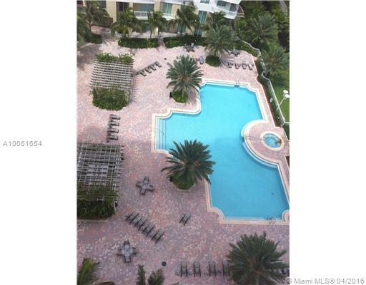 Spacious 1 bed/ 1 bath plus guest bath, overlooking golf course. This unit has an assigned storage, marble floors in bathrooms & kitchen and carpet in bedroom and living room. Open kitchen with stainless steel appliances and granite counter top, washer/dr yer inside unit. walk-in closet, bathroom with separated shower and tub. Pool, spa, gym, tennis, sauna, cable, internet, movie theater, 24 hour concierge and valet. Close to the Beach and Gulfstream. Stores and Restaurants next to the building.