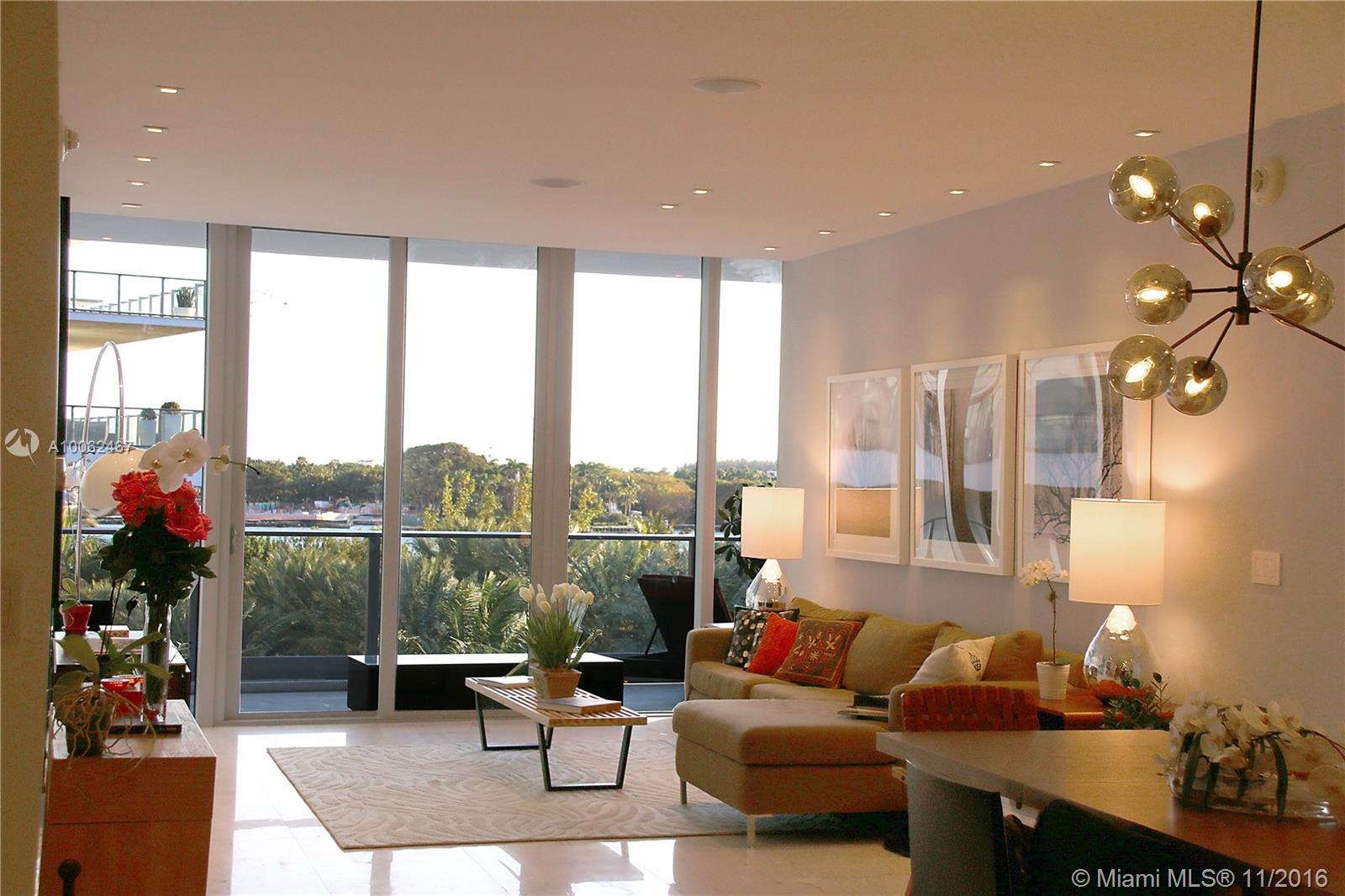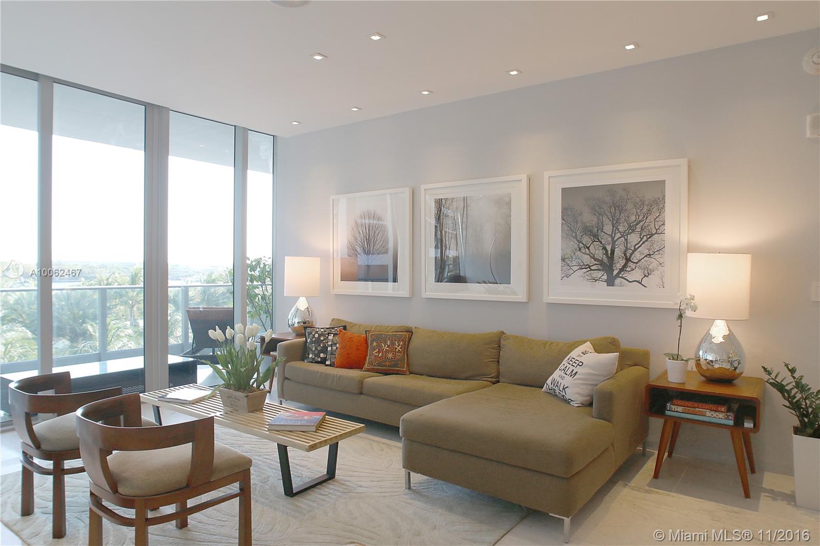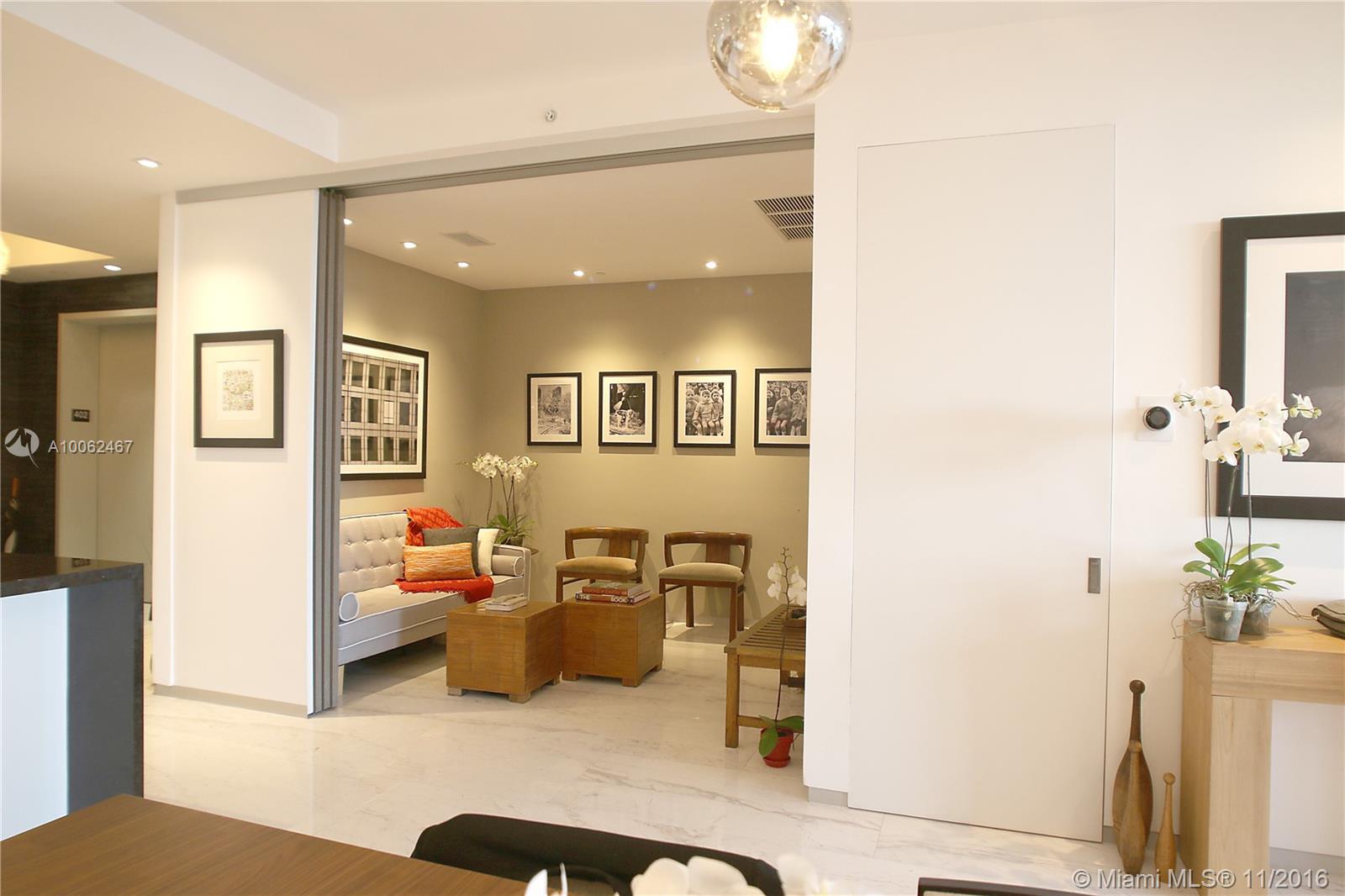 Completely renovated, upgraded and gorgeously finished residence at Marea. Recessed aluminum baseboards, "Apogee-like" open closets, 8 ft tall frameless doors, upgraded lighting with LED spots and custom lighting scenes, Sonos music system, 24 x 48 marble, full convertible Den with stacking doors (3rd bedroom). Residence 402 is the best finished residence in the building. Water views and huge balcony. Gym, Sauna, Private Pool and Beach VIP Services. Only 30 residencies. Realistically priced.