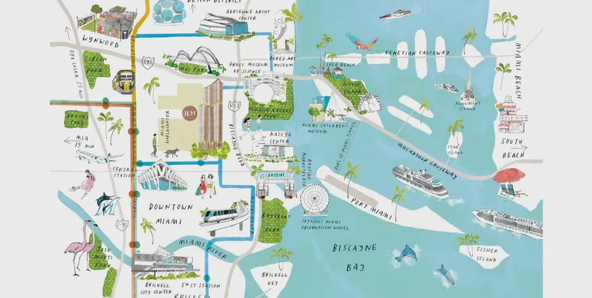 Благодаря идеальному расположению жильцы JEM будут в нескольких минутах ходьбы от рынка Bayside, Miami Arena и парка Bayfront. Если воспользоваться транспортом, то можно легко добраться за 10 минут до дизайнерского района Майами, за 15 минут до международного аэропорта Майами, и за 16 минут до белоснежного безграничного океанского пляжа South Beach.