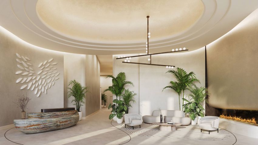 • Круглосуточное обслуживаемое лобби со специальной стойкой регистрации, просторной гостиной зоной с камином, произведениями искусства, изготовленными на заказ, освещением, художественной отделкой стен, потолка и пола