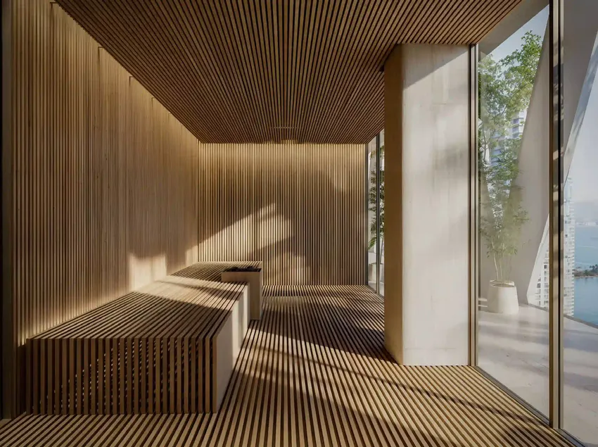 Часть удобств размещена на озеленённых террасных уровнях, формируя закрытую резидентскую среду с курортным характером. Curated food & beverage-пространства дополняют повседневный комфорт.