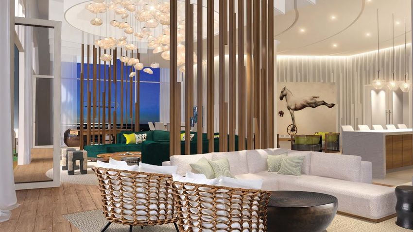 Элегантность и самобытность кондоминиума отражена в роскошных интерьерах с отделкой из натуральных материалов в теплых тонах. Дизайн общественных зон создает неповторимую атмосферу курорта с неуловимой атмосферой Греции благодаря светлым колоннам и каменным полам. Деревянные настилы, прочные дубовые столешницы и мягкие зеленые газоны перенесут вас на берег Средиземного моря и окружат южноевропейской легкостью и элегантностью, которые принес в Южную Флориду девелопер Mill Creek Residential.