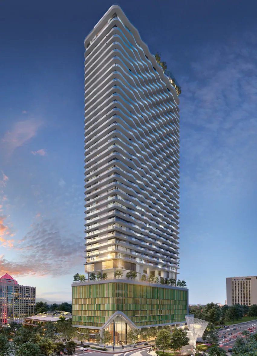 Эстетика 45-этажного здания отражает фирменный итальянским стиль Pininfarina. Башня спроектирована с характерным волнообразным дизайном и волнистыми террасами, которые имитируют поток воды и обеспечивают панорамный вид на реку New River и Атлантический океан.