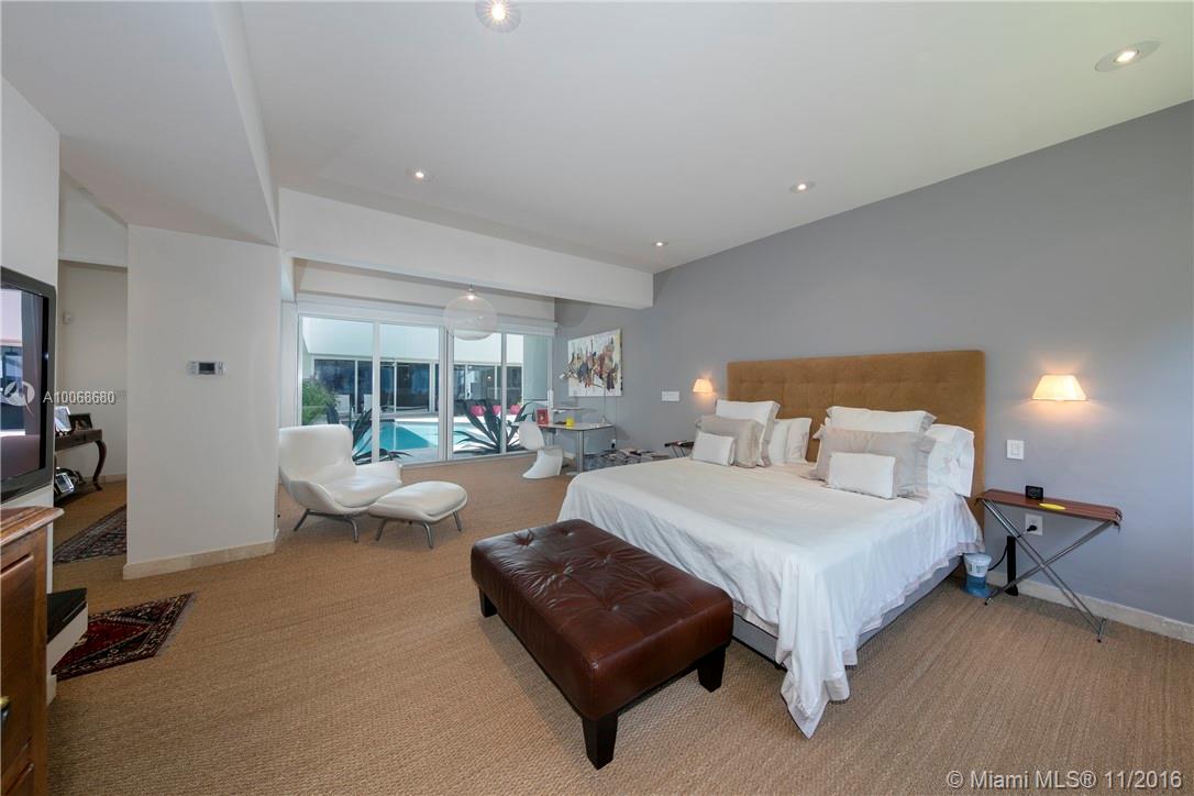 One story contemporary home on 25,475 sf lot w/ sleek design & lots of updates: floor-to-ceiling impact windows & doors, marble floors, Bang & Olufsen sound system, new plumbing & electrical, organized closets, modern Artemide light fixtures, sleek hardware, Sub-Zero & Miele appliances & Midnight Granite Glass counter tops in kitchen & quartz counter tops in bathrooms. Beautiful volume Brazilian Teak ceilings in living and family rm. Guest quarters across pool area that has a canvas sail for sun shade