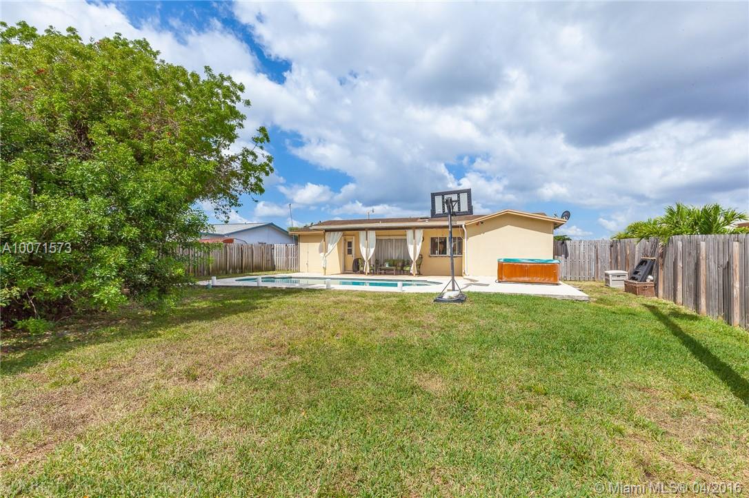 Make this charming 3 Bedroom, 2 bathroom secluded home your castle. A rarity, this property has no neighbors towards the back of your home, giving you the privacy seldom seen in South Florida. The pool is accompanied with a cabana bathroom for your guests. Spacious living area throughout the home and equipped with accordion shutters,newer air conditioning system installed.
