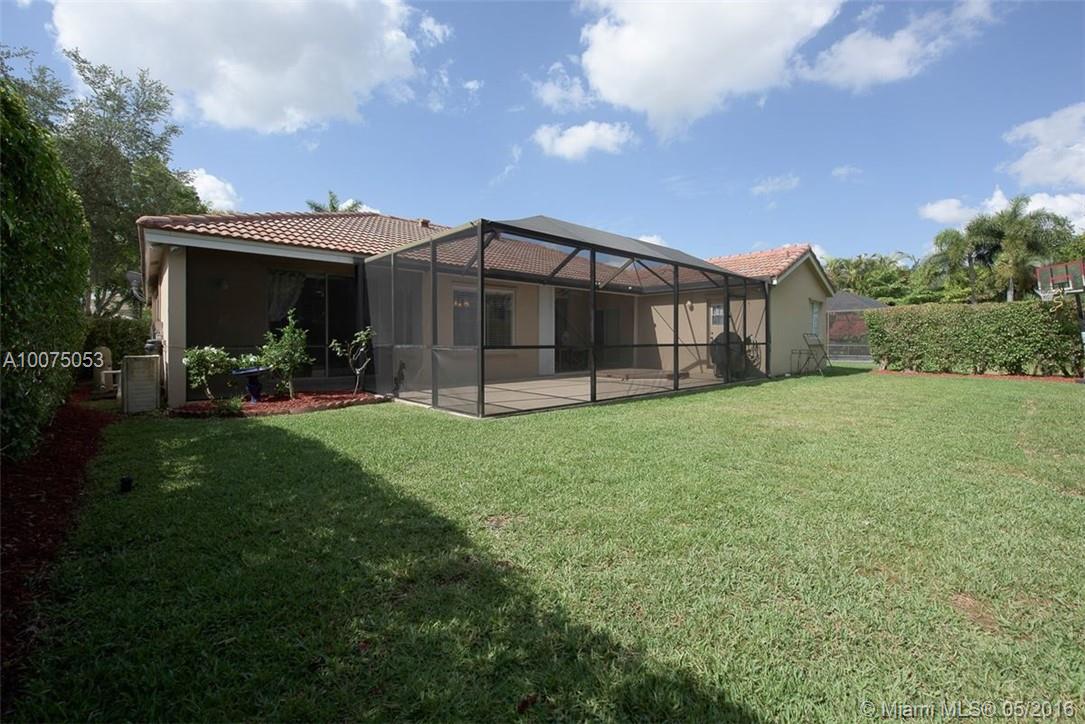 Live in the heart of Weston. Walk to the Town Center, Publix, restaurants and more! Beautiful and super well maintained 3 bedrooms plus office/den, 2.5 bath, 2 car garage featuring; 2013 roof, laminate wood floors in all living areas, carpet in bedrooms, neutral tones, large master bedroom with his and hers walk in closets, remodeled master bathroom with air-jet jacuzzi and rain-head shower, stainless steel appliances, new water heater, great outdoor screened patio with underground spa. Room for pool.