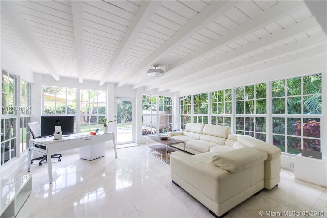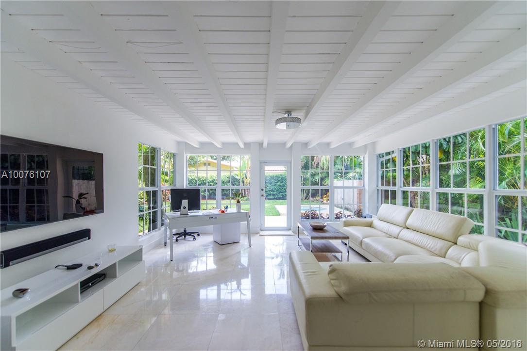Mediterranean Magic w/ a modern twist on fabulous La Gorce Drive. Beautifully renovated 4 BD, 4 BA home originally designed by premier architect, L Murray Dixon. Stunningly remodeled w/ large eat in kitchen, gas stove, subzero refrigerator/freezer, & stone countertops. New hard wood & marble floors, hurricane impact windows & doors, volume ceilings, formal living rm. w/cathedral ceiling & glorious family rm. that soaks up the morning sun. Large lush back yard w/ splash pool. Easy to show!