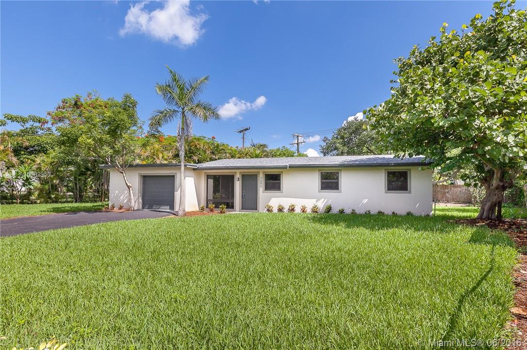 Modern 3bed/2bath house completely remodeled! 1 1/2 car Garage. Huge lot almost 11,000 sq feet. NEW wood kitchen cabinets/granite counter tops. ALL NEW Roof, Impact windows, A/C, garage door and doors-all installed with PERMITS! Master bed has large walk-in closet, master bath has double sinks. Room for a pool. Minutes from Ft Lauderdale Intl Airport, close to major highways: I-595, I-95, Turnpike. Close to St. Thomas Aquinas and Montessori schools. Charters School of Excellence Elementary School.