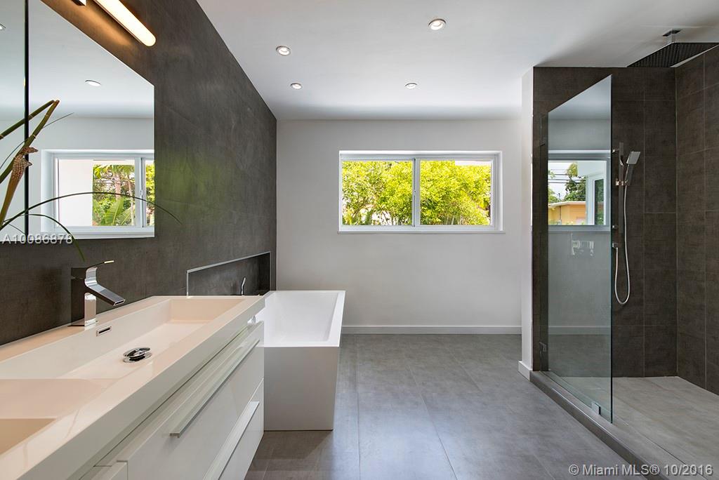 Mid-century masterpiece in Miami Shores completely remodeled w/ the finest finishes! Expansive Master Suite (almost 600 sq ft) w/ large closets & spacious bathroom. 2nd master with en-suite bath. Large open living spaces perfect for entertaining. 4th bonus room is great for office/hobby room. Crisp, clean lines in the kitchen w/ Bosch appliances incl induction cooktop. Exquisite hardwood floors throughout. High impact windows & doors, designer and recessed lighting, laundry room w/extra storage.