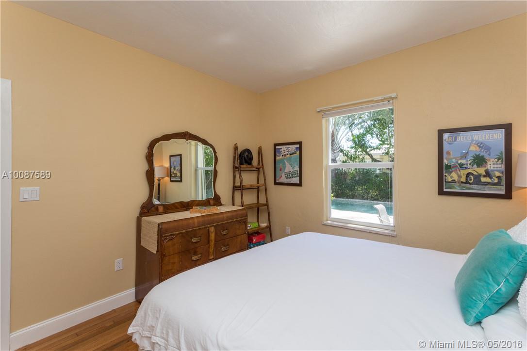 Circular driveway with numerous palm tree varieties frame this Art Deco oasis. Windows permit plenty of sunlight along with pool views from many parts of the house. White cabinetry, marble counter top & stainless steel appliances in the kitchen. Spacious master bedroom includes a walk in closet in addition to a bathroom. 2nd & 3rd bedrooms share a Jack-n-Jill bathroom. Den used as a office has the 3rd bathroom. Step into the backyard and enjoy the pool and lush foilage. 3 blocks from ocean.