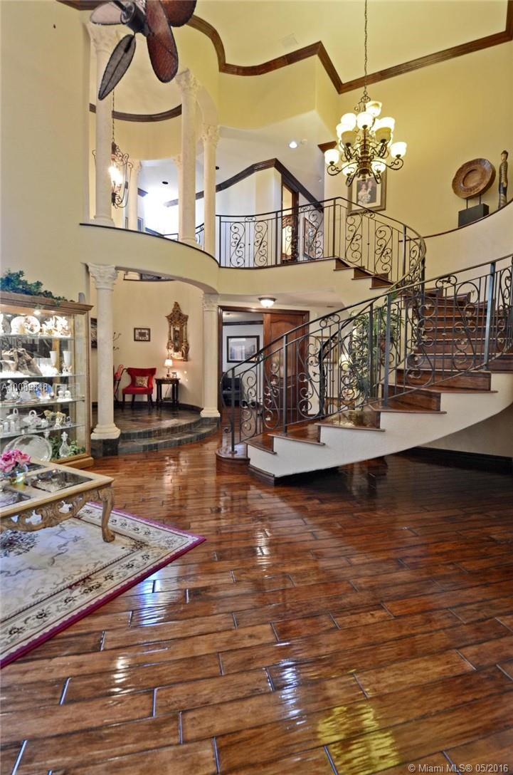 Custom made home that is timeless, understated, elegance & sophistication all at once. You are welcomed by a 10’ arch height Mahogany entrance door. The staircase with its ornate iron railings, oval ceilings & stain glass artwork on windows are a masterpiece. Features include: plantation shutters & silhouette on impact windows, French doors, state of the art chef’s kitchen, Walnut solid wood floors, mosaic & natural stone in bathrooms, architectural landscaping throughout exterior of home, and many more.