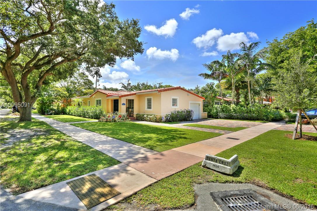 Enter in & feel at home in this impeccable, timeless Coral Gables property. The light & bright living spaces include spacious formal living and dining rooms, updated kitchen with stainless steel appliances & backsplash, family room opening onto the back yard. Hardwood & travertine floors run throughout this 3Br/2.5Ba home. Master suite has 2 closets & lovely bathroom. Situated on a corner lot on an extremely quiet street w/ a 1 car garage, pavered driveway, & charming front porch.