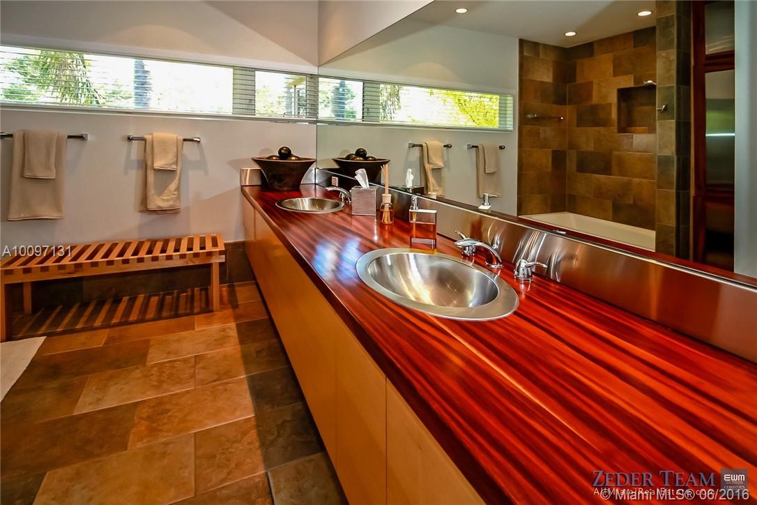 Featured on HGTV, this Florida Contemporary home in Pinecrest is simply gorgeous. Situated on a lush and gated lot on Millionaires Row, it features impeccable design and highest quality finishes while remaining warm and inviting. View-filled gourmet kitchen with eat-in nook, formal living room, dining room, unique loft-like master bedroom, stone and wood flooring, rare and exotic wood finishes, designer fixtures, covered patio, endless pool, impact windows/doors and more. Ideal location and great schools.