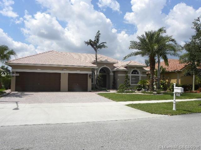 Executive home! Yale model featuring lakefront preserve views, pool, and spa. Triple split bedroom plan, cabana bath, formal living and dining areas. Spacious family room featuring modern and functional wall unit included. Updated bathrooms, generous and modern kitchen with view of covered patio and lake area, additional awning for added shade. Home is very well laid out offering the best that South Florida has to offer. Schools K through 12 "A" rated. A wonderful place to call home. Bring offers!!