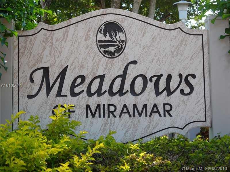 Meadows of Miramar-Townhouse features swimming pool, basketball, playground. Close to entertainment, shopping, major roads. 3 bed/2bath corner residence features lush landscaping, porch, bedroom and living area offers unobstructed view of lake! Attached 1 car garage, private screened patio off living area. Sun filled living area offer natural lighting, tile flooring throughout, eat-in kitchen, walk-in closet in master suite. Extra storage in garage, full length pantry closet, linen closets!