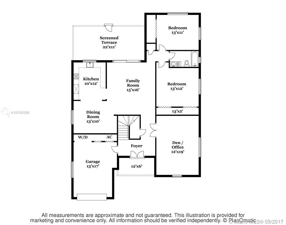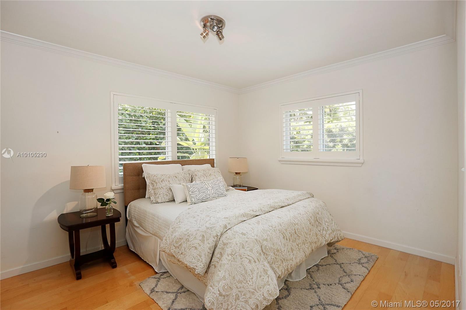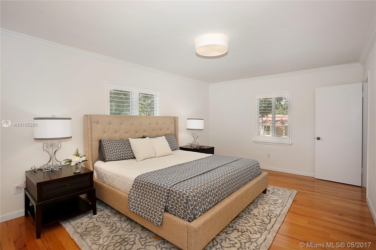 Beautiful, contemporary home situated in the Golden Triangle on wonderful street. The large spaces & open flrplan offer fam rm, kitchen & dining rm all adjacent creating a perfect entertaining home. Spacious den could be used as frml space or as office or playrm. 2 bedrms down w/ private master ste upstairs. Wonderful details include impact glass, hdwd & tile flrs, screened terrace, tiled garage, master w/walk-in closet & granite countertops. Conveniently located to Youth Center, Venetian Pool & airport.