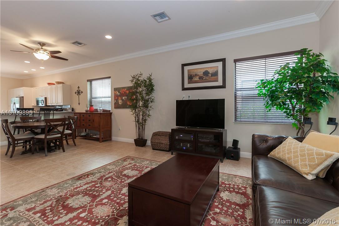Stunning townhouse situated in the heart of resort style community of Artesia. Granite center island kitchen overlooks spacious great room as well as private backyard patio. Gracious upstairs master suite with sitting room & private covered balcony. One bedroom and one bathroom downstairs could also be used as office or guest room. Features include impact windows and doors, crown molding, upgraded baseboards and wood blinds. Steps to community clubhouse with spa, pool, tennis, gym, billards and more.